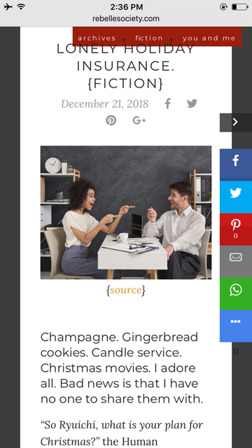 冒頭のスクショは、米人気アート系ウェブマガジンに掲載された私のクリスマス小説。珍しくラブ・コメディです!